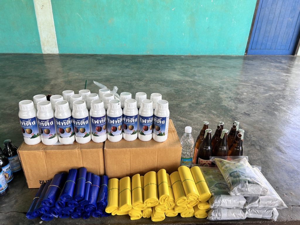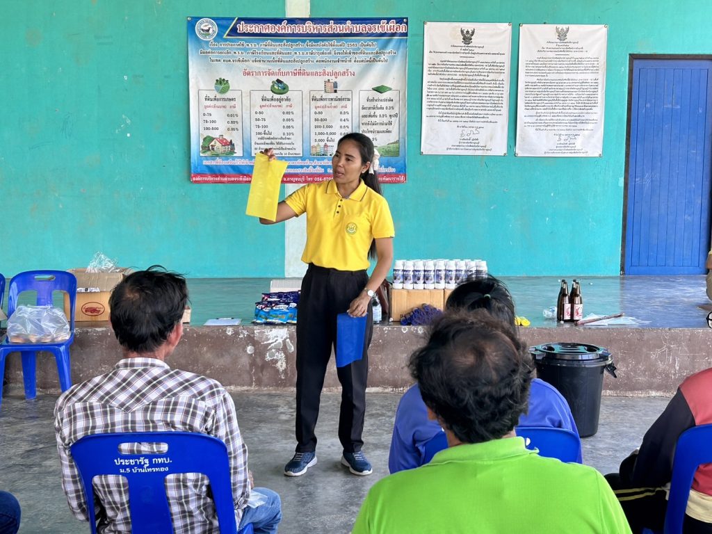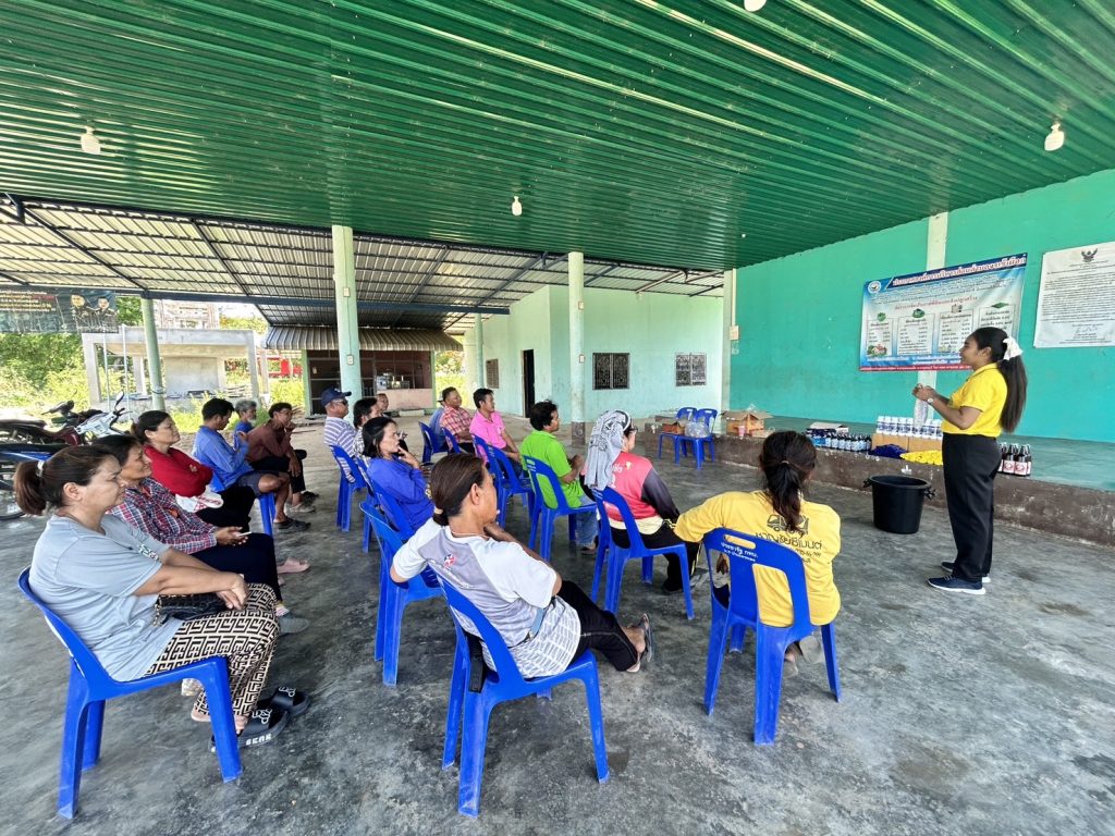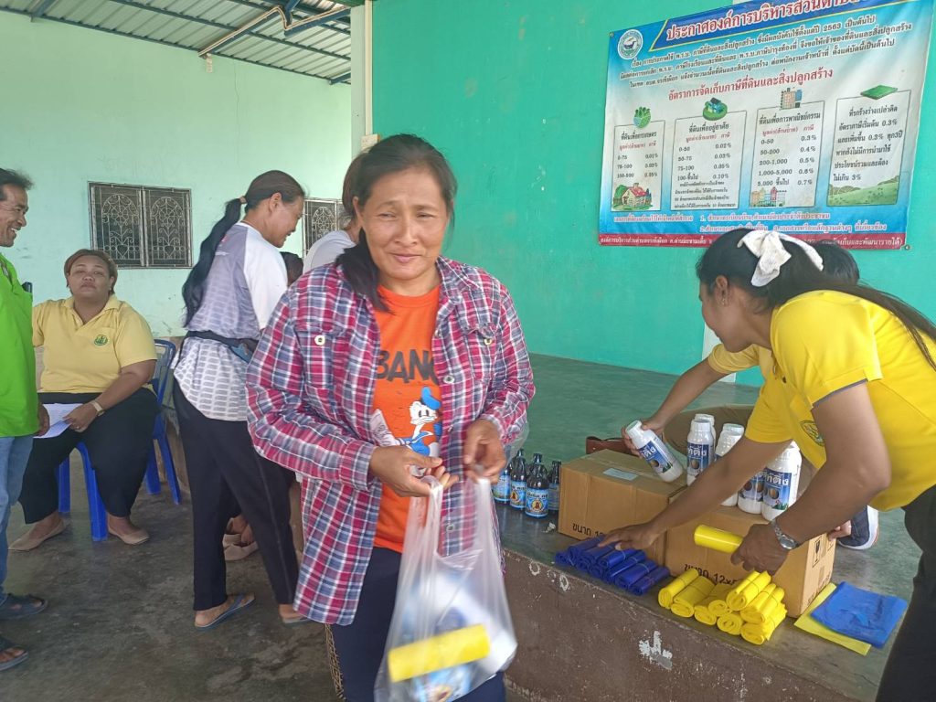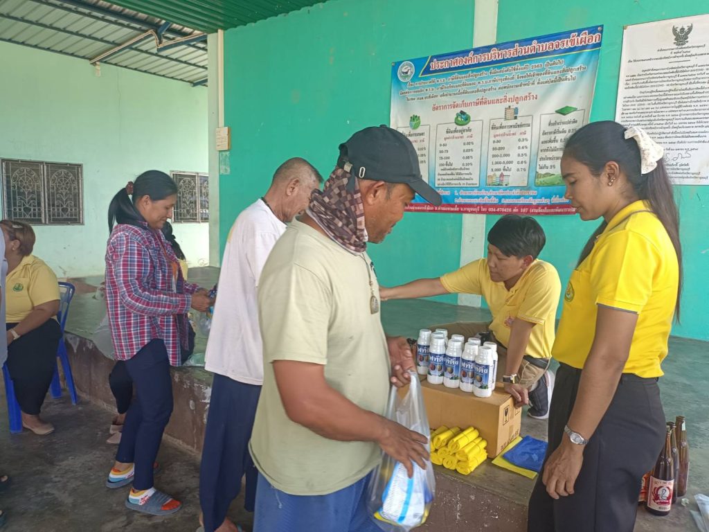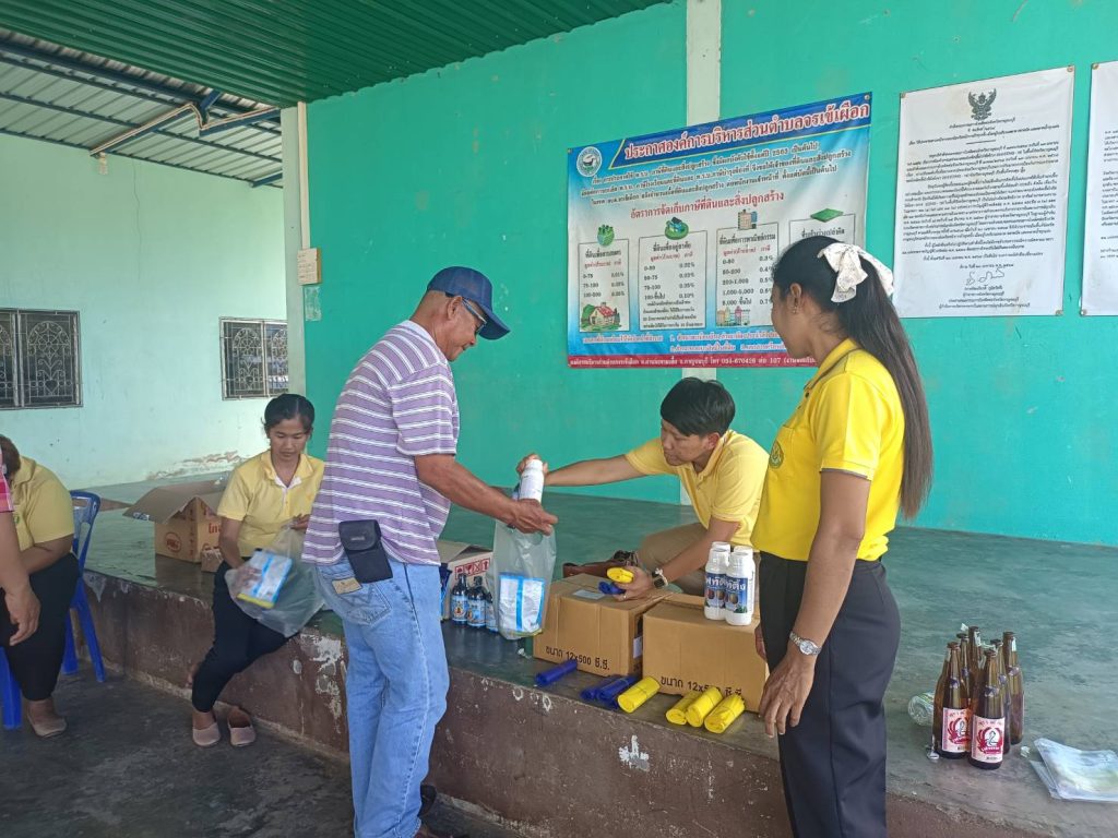 นางบุณยลักษณ์ กำเลิศทอง เกษตรอำเภอด่านมะขามเตี้ย มอบหมายเจ้าหน้าที่สำนักงานเกษตรอำเภอด่านมะขามเตี้ย ร่วมกับเจ้าหน้าที่สำนักงานเกษตรจังหวัดกาญจนบุรี กลุ่มอารักขาพืช โครงการส่งเสริมการใช้สารชีวภัณฑ์และแมลงศัตรูธรรมชาติทดแทนสารเคมีทางการเกษตร มีวัตถุประสงค์เพื่อใช้สารชีวภัณฑ์และแมลงศัตรูธรรมชาติทดแทนการใช้สารเคมีในการป้องกันกำจัดศัตรูพืช และผลักดันให้เกษตรกร ลด ละ เลิกการใช้สารเคมีป้องกันกำจัดศัตรูพืชหรือให้มีการใช้ย่างถูกต้องและปลอดภัย มอบปัจจัยการผลิต และผลิตน้ำหมักสะเดา ณ ศาลาอเนกประสงค์ หมู่ 5 ตำบลจรเข้เผือก อำเภอด่านมะขามเตี้ย จังหวัดกาญจนบุรี