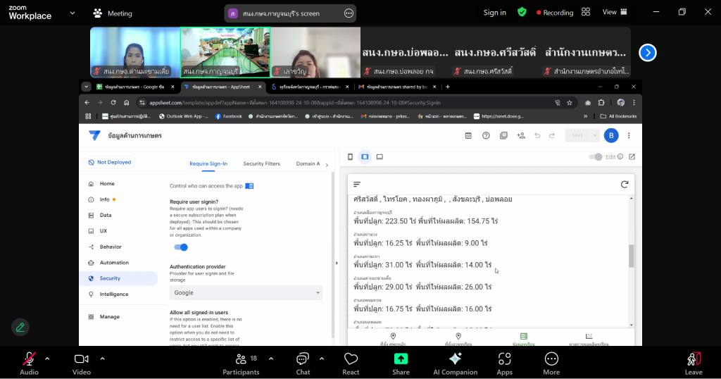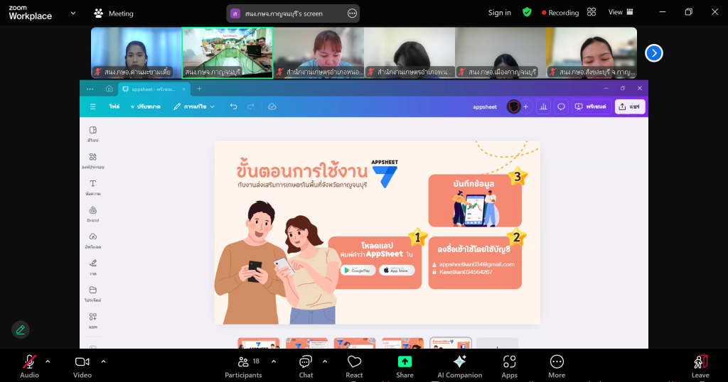 ร่วมประชุมชี้แจงการใช้งาน AppSheet กับงานส่งเสริมการเกษตร (ทุเรียน) ผ่านระบบประชุมออนไลน์ Zoom Meeting