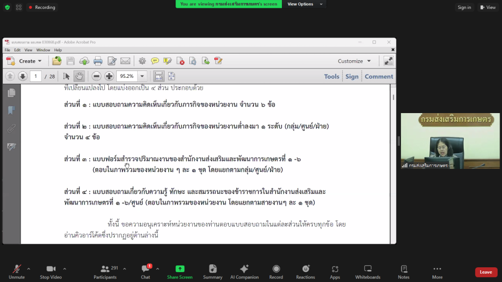 โดยนางสาวสุรัชณี พวงศิริ เกษตรอำเภอด่านมะขามเตี้ย เข้าร่วมประชุมชี้แจงการตอบแบบสำรวจความคิดเห็นในการจัดทำข้อเสนอการปรับปรุงโครงสร้างในการแบ่งส่วนราชการกรมส่งเสริมการเกษตร ผ่านระบบออนไลน์ระบบ ZOOM ณ ห้องประชุมสำนักงานเกษตรอำเภอด่านมะขามเตี้ย จังหวัดกาญจนบุรี