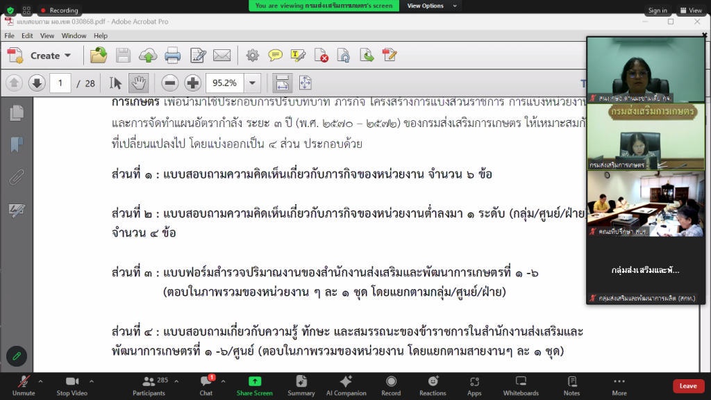 ร่วมประชุมชี้แจงการตอบแบบสำรวจความคิดเห็นในการจัดทำข้อเสนอการปรับปรุงโครงสร้างในการแบ่งส่วนราชการกรมส่งเสริมการเกษตร ผ่านระบบออนไลน์ระบบ ZOOM ณ ห้องประชุมสำนักงานเกษตรอำเภอด่านมะขามเตี้ย จังหวัดกาญจนบุรี