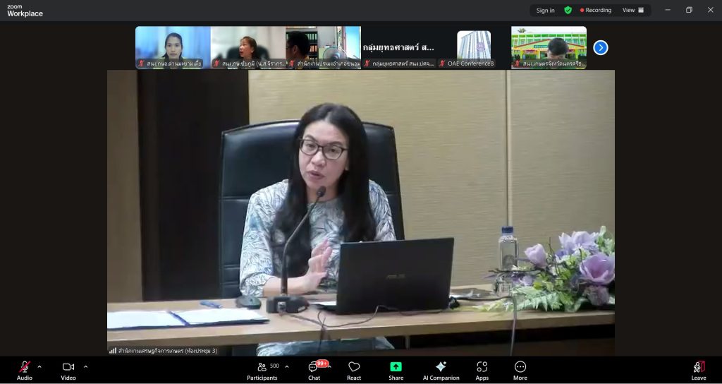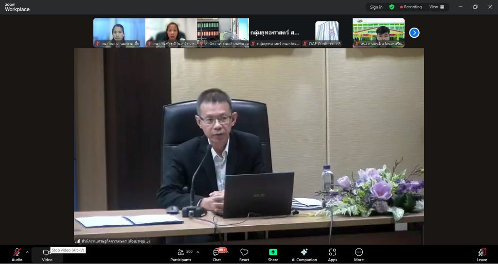นางสาวสุรัชณี พวงศิริ เกษตรอำเภอด่านมะขามเตี้ย มอบหมายเจ้าหน้าที่สำนักงานเกษตรอำเภอด่านมะขามเตี้ย เข้าร่วมประชุมชี้แจงการจัดทำปฏิทินผลผลิตสินค้าเกษตรรายเดือนระดับจังหวัดเพื่อการบริหารจัดการด้านความมั่นคงอาหารและโภชนาการประจำปี 2568 ให้แก่หน่วยงานที่เกี่ยวข้องทั้งส่วนกลางและส่วนภูมิภาภ ผ่านระบบ Zoom Meeting ณ ห้องประชุมสำนักงานเกษตรจังหวัดกาญจนบุรี