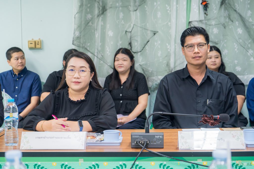 นางสาวสุรัชณี พวงศิริ เกษตรอำเภอด่านมะขามเตี้ย มอบหมายเจ้าหน้าที่สำนักงานเกษตรอำเภอด่านมะขามเตี้ย พร้อมด้วยเจ้าหน้าที่ธุรการที่เบิกจ่ายเงิน เข้าร่วมประชุมเกษตรอำเภอ ครั้งที่ 10/2568 วัตถุประสงค์เพื่อมุ่งเน้นการติดตามและขับเคลื่อนนโยบายสำคัญ เพื่อให้การดำเนินงานของกรมส่งเสริมการเกษตรในพื้นที่จังหวัดกาญจนบุรีเป็นไปอย่างมีประสิทธิภาพและเกิดประโยชน์สูงสุดต่อเกษตรกร ณ ห้องประชุมสำนักงานเกษตรจังหวัดกาญจนบุรี โดยมีนายชยุติ โสไกร หัวหน้ากลุ่มส่งเสริมและพัฒนาการผลิต รักษาราชการแทนเกษตรจังหวัดกาญจนบุรี เป็นประธานในการประชุม