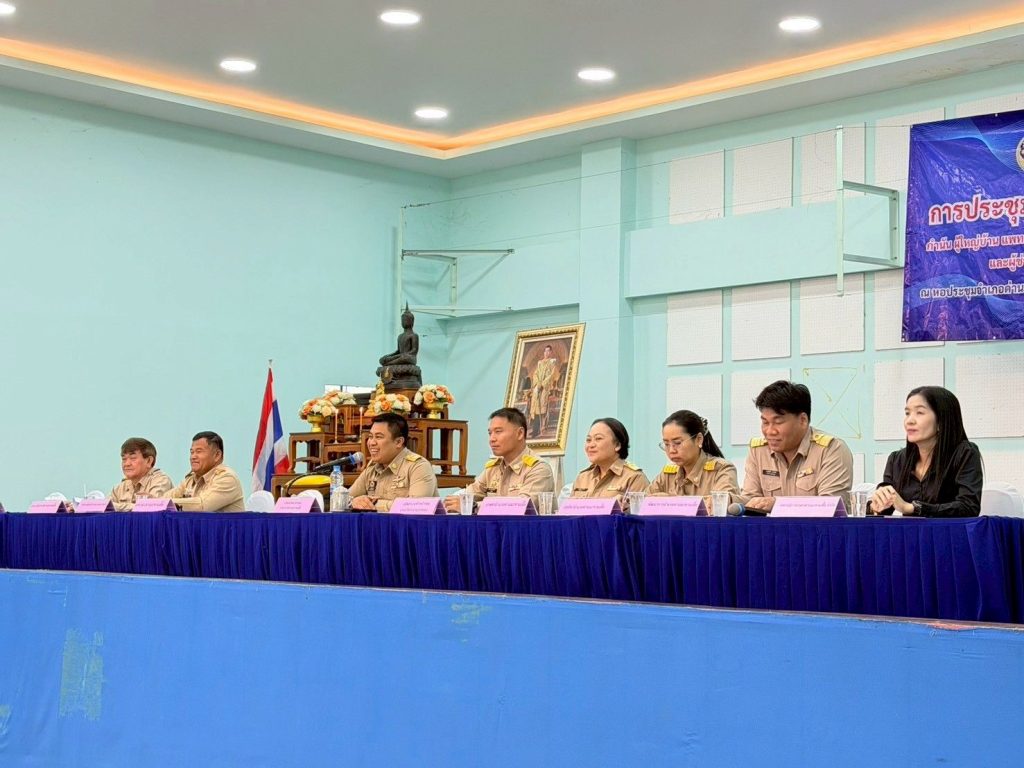 ร่วมประชุมกำนัน — ผู้ใหญ่บ้าน แพทย์ประจำตำบล สารวัตรกำนัน และผู้ช่วยผู้ใหญ่บ้าน ประจำเดือนธันวาคม 2568 ณ หอประชุมอำเภอด่านมะขามเตี้ย จังหวัดกาญจนบุรี