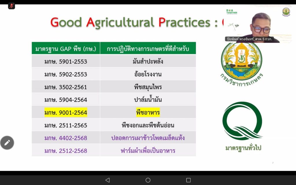 ร่วมสัมมนาเชิงปฏิบัติการ การพัฒนาเจ้าหน้าที่เป็นที่ปร฿กษาเกษตรกรและเป็นวิทยากรด้านมาตรฐาน GAP ประจำปีงบประมาณ พ.ศ. 2569 ผ่านระบบประชุมทางไกลออนไลน์ Zoom Meeting ณ สำนักงานเกษตรอำเภอด่านมะขามเตี้ย จังหวัดกาญจนบุรี
