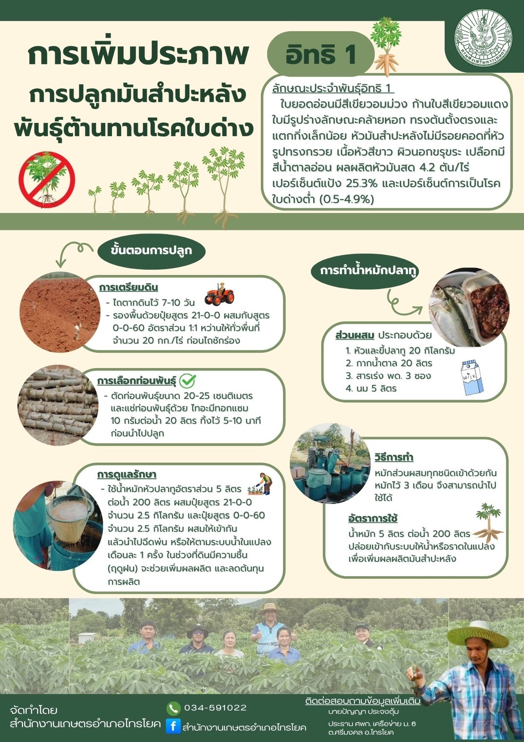 วันที่ 17 กันยายน 2568 นางสาวสุภิญญา เชาวสกู เกษตรอำเภอไทรโยค มอบหมายให้ นางสาวขนิษฐา สันติประชา นักวิชาการส่งเสริมการเกษตรชำนาญการ ลงพื้นที่ติดตามแปลงเรียนรู้โครงการศูนย์จัดการดินปุ๋ยชุมชน (ศดปช.) พืชมันสำปะหลัง ทำการเก็บข้อมูลการเจริญเติบโตของต้น วัดความสูงของต้นและขุดดูขนาดของหัว และสำรวจโรคและแมลง ณ แปลงของ นายยอด อิ่มพลับ ซึ่งตั้งอยู่ที่ หมู่ 2 ตำบลสิงห์