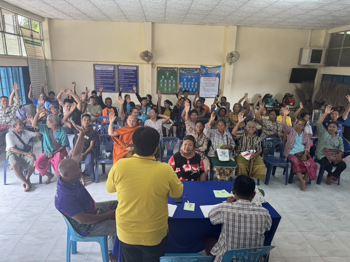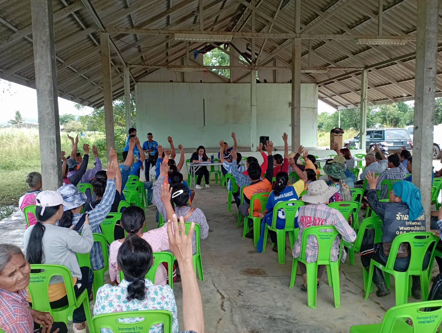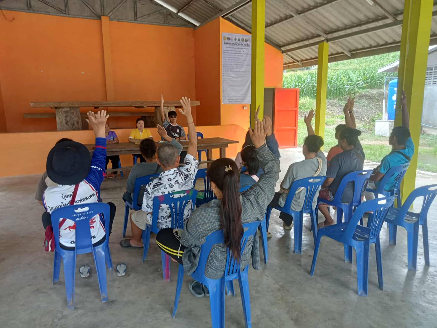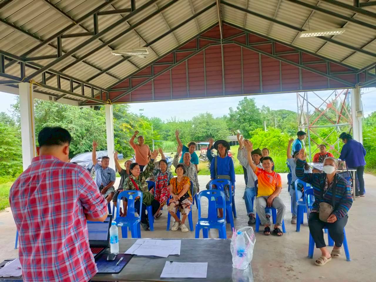 วันที่ 11 กันยายน 2568 นางสาวสุภิญญา เชาวสกู เกษตรอำเภอไทรโยค พร้อมด้วยเจ้าหน้าที่สำนักงานเกษตรอำเภอำไทรโยค ลงพื้นที่ประชาคม ลงพื้นที่ประชาคมการขึ้นทะเบียนปรับปรุงทะเบียนเกษตรกรผู้ปลูกพืชเศรษฐกิจ และตรวจสอบพื้นที่เพาะปลูกข้าวนาปี 2568/69 ในพื้นที่หมู่ที่ 6 ตำบลศรีมงคล อำเภอไทรโยค จังหวัดกาญจนบุรี เพื่อตรวจสอบข้อมูลการขึ้นทะเบียน/ปรับปรุง ของเกษตรกรในพื้นที่ให้เป็นไปอย่างถูกต้องและครบถ้วน
