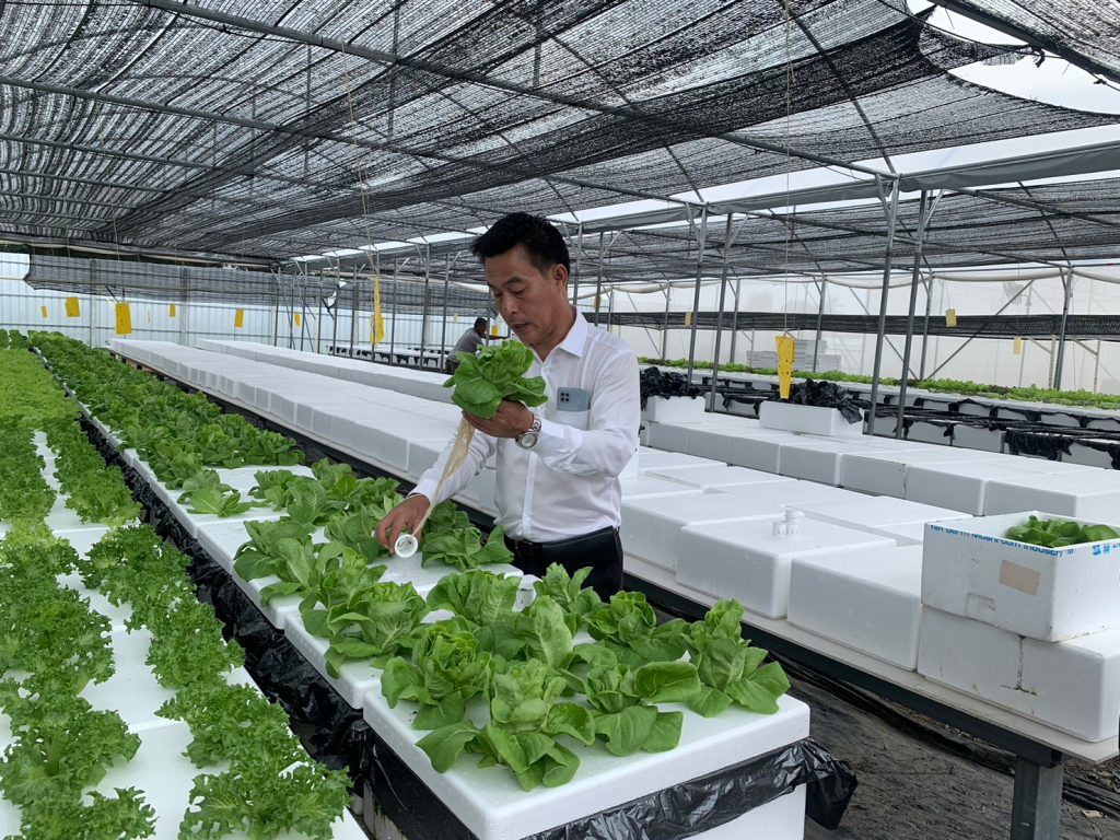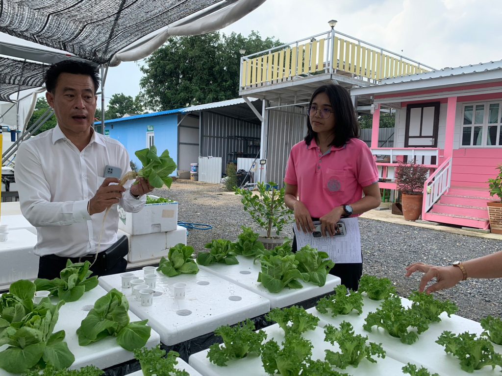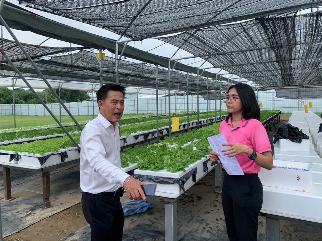 วันที่ 17 ตุลาคม 2566 ดำเนินการเยี่ยมเยียนและตรวจสอบพื้นที่การเพาะปลูกของเกษตรกรผู้ปลูกผักสลัดในโรงเรือน ต.ดอนขมิ้น