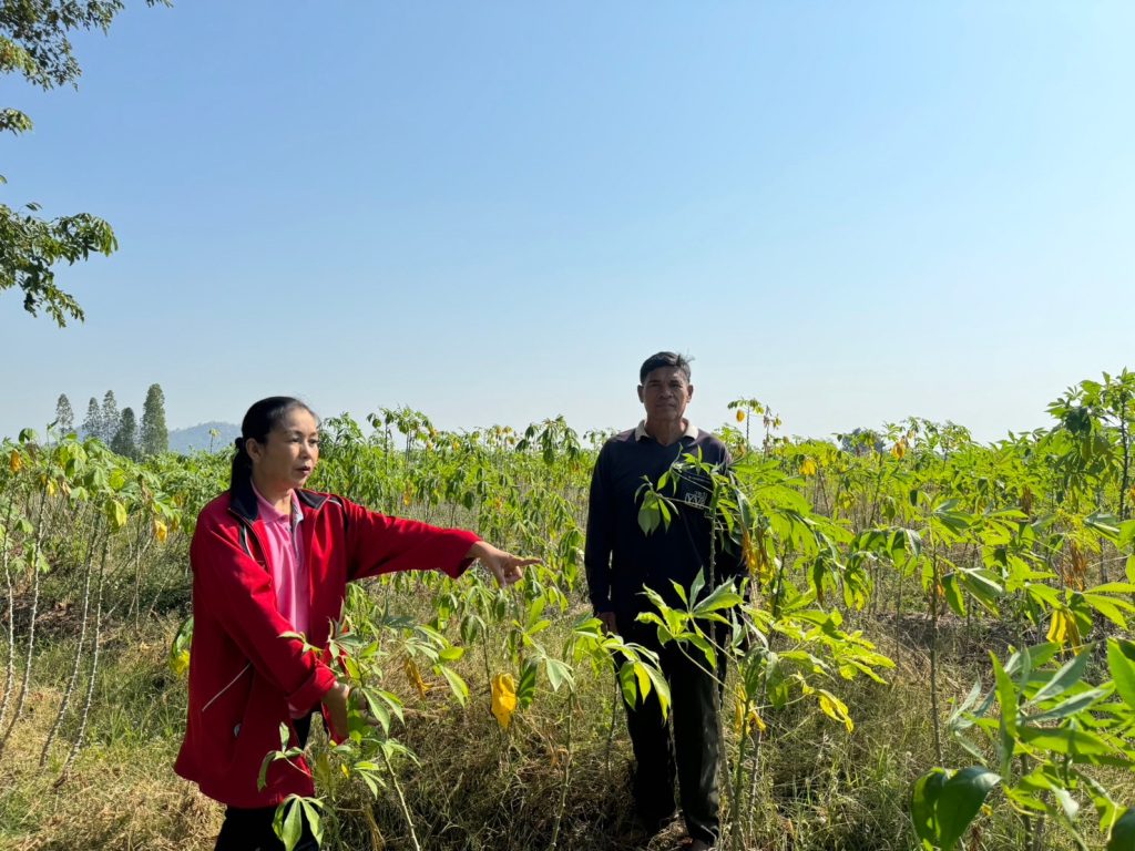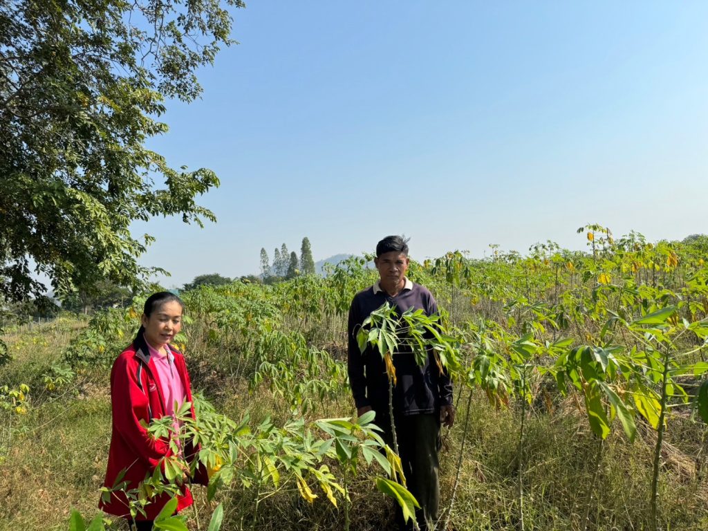 วันที่ 9 มกราคม 2567 ปฏิบัติงานสำรวจติดตามสถานการณ์การระบาดของโรคใบด่างมันสำปะหลังในพื้นที่ ตำบลเขาสามสิบหาบ