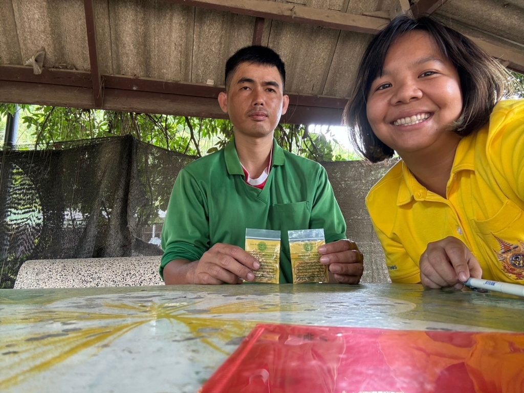 กนกภรณ์ ดอนเจดีย์ นักวิชาการส่งเสริมการเกษตรชำนาญการ นำเมล็ดพันธุ์ข้าวพระราชทาน เนื่องในพระราชพิธีพืชมงคลจรดพระนังคัล
