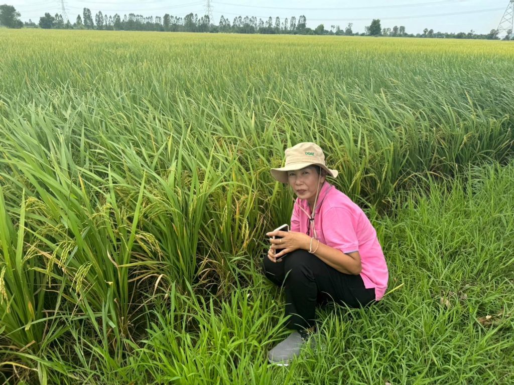 วันที่ 2 กรกฎาคม 2567 สำรวจติดตามสถานการณ์การระบาดของหนอนห่อใบข้าวและโรคเมล็ดด่างในแปลงพยากรณ์ ตำบลเขาสามสิบหาบ