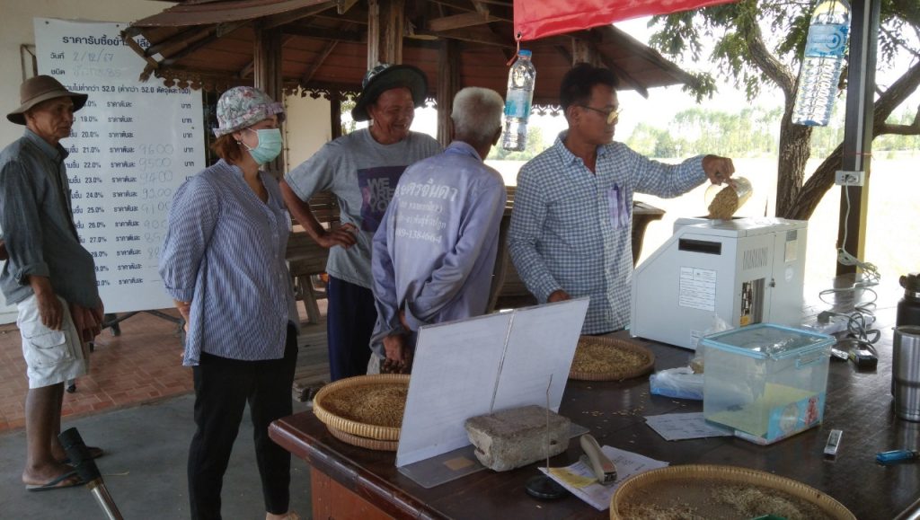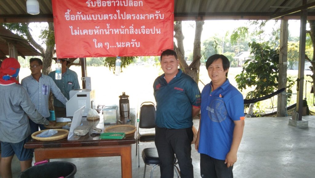 นิตย์ประเสริฐ นักวิชาการส่งเสริมการเกษตรชำนาญการพิเศษ ลงพื้นที่หมู่ที่ 7 บ้านดอนมะสังข์ ตำบลโคกตะบอง อำเภอท่ามะกา จังหวัดกาญจนบุรี เพื่อตรวจเยี่ยมจุดรับซื้อข้าวเปลือกของผู้ประกอบการโรงสีข้าวจากจังหวัดนครปฐม จากการสอบถามข้อมูลการรับซื้อข้าวเปลือก
