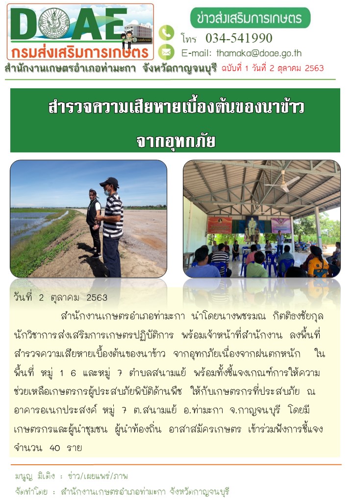2 ตุลาคม 2563 สำรวจความเสียหายเบื้องต้นของนาข้าวจากอุทกภัย