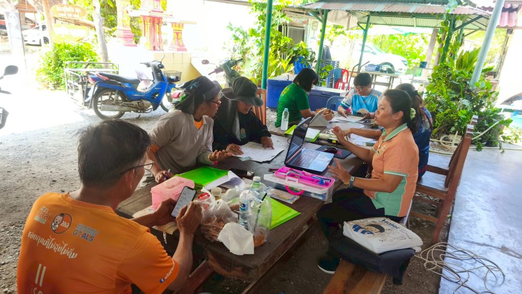หมู่ 4 หมู่ที่ 7 และหมู่ 15 ตำบลพระแท่น อำเภอท่ามะกา จังหวัดกาญจนบุรี เพื่อปรับปรุงข้อมูลการปลูกพืชให้เป็นปัจจุบันเป็นฐานข้อมูลในการสนับสนุนและให้ความช่วยเหลือเยียวยาจากภาครัฐ พร้อมทั้งประชาสัมพันธ์การปรับปรุงทะเบียนเกษตรกรผ่านแอปพลิเคชั่น farmbook และให้เกษตรกรระวังมิจฉาชีพหลอกลวงแอบอ้างอำนวยความสะดวกในการขึ้นทะเบียนและปรับปรุงทะเบียนเกษตรกร เพื่อเข้าร่วมโครงการมาตรการให้ความช่วยเหลือต่างๆ จากภาครัฐผ่านช่องทางโทรศัพท์หรือ Line ณ ที่ทำการผู้ใหญ่บ้านหมู่ที่ 4 และ หมู่ที่ 7 ตำบลพระแท่น อำเภอท่ามะกา จังหวัดกาญจนบุรี
