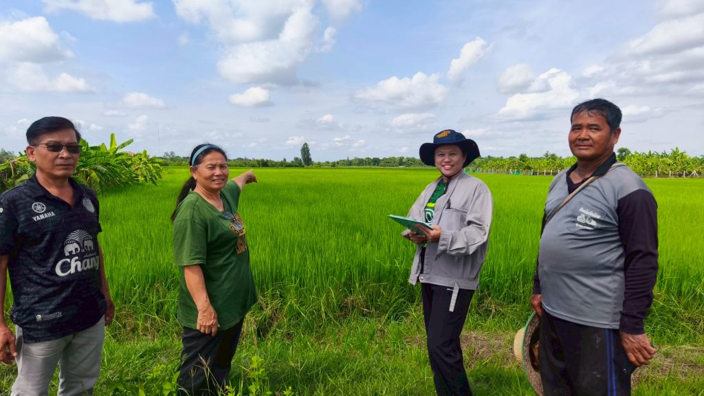 วันที่ 21 พฤษภาคม 2568 ลงพื้นที่ตรวจสอบพื้นที่ปลูกข้าวนาปรังของเกษตรกรที่ขึ้นทะเบียนเกษตรกรในพื้นที่ตำบลพระแท่น อำเภอท่ามะกา จังหวัดกาญจนบุรี
