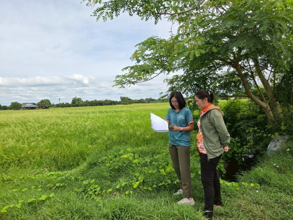 วันที่ 19 มิถุนายน 2568 ลงพื้นที่ตรวจสอบพื้นที่ปลูกข้าวนาปรังของเกษตรกรที่ขึ้นทะเบียนเกษตรกรในพื้นที่ เพื่อตรวจสอบข้อมูลพื้นที่การเพาะปลูก พันธ์ุข้าว วันปลูก ตรงตามข้อมูลการขึ้นทะเบียนหรือไม่ ณ พื้นที่หมู่ที่ 5 ตำบลดอนขมิ้น อำเภอท่ามะกา จังหวัดกาญจนบุรี