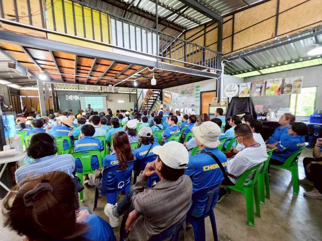 เกษตรท่ามะกา ร่วมต้อนรับคณะดูงานจากจังหวัดชลบุรี ศึกษาดูงานศูนย์บ่มเพาะเกษตรกรรุ่นใหม่ “ไร่รักกาญจน์”
