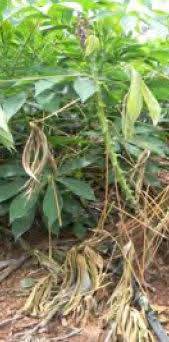 – มันสำปะหลังอายุ 4-7 เดือน หว่านปูนขาวให้ทั่วแปลง และควรเร่งเก็บเกี่ยวผลผลิตทันที