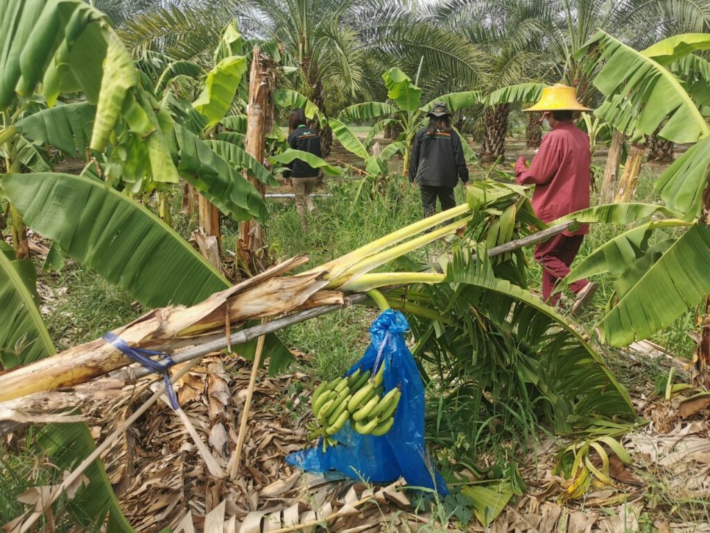 วันที่ 5 เมษายน 2565 ดำเนินการสำรวจพื้นที่ประสบวาตภัย เกษตรกรผู้ปลูกกล้วยหอม ตำบลท่าไม้
