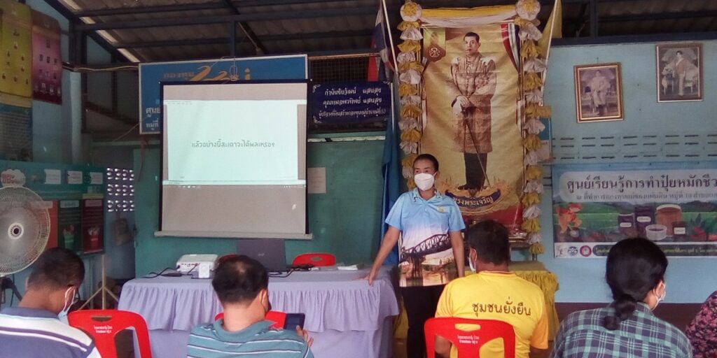 วันที่ 14 มิถุนายน 2565 สำนักงานเกษตรอำเภท่ามะกา โดยนายวิเชียร ชินเจริญทรัพย์ มอบหมายให้นายวรรณะ นิตย์ประเสริฐ นักวิชาการส่งเสริมการเกษตรชำนาญการ และนางสาวศักดิ์ศรี เจตนะเสน นักวิชาการส่งเสริมการเกษตรปฏิบัติการ จัดกระบวนการเรียนรู้แก่เกษตรกร เพื่อพัฒนาและยกระดับคุณภาพศูนย์จัดการศัตรูพืช โครงการศูนย์เรียนรู้การเพิ่มประสิทธิภาพการผลิตสินค้าเกษตร (ศพก.) ณ กองทุนแม่ หมู่ที่ 10 ตำบลแสนตอ อำเภอท่ามะกา จังหวัดกาญจนบุรี เกษตรกรเข้าร่วม จำนวน 21 ราย มีความสนใจต้องการผลิตเชื้อราบิวเวอร์เรียและเชื้อราไตรโคเดอร์ม่า เพื่อใช้ในการลดต้นทุนการผลิตสินค้าเกษตร