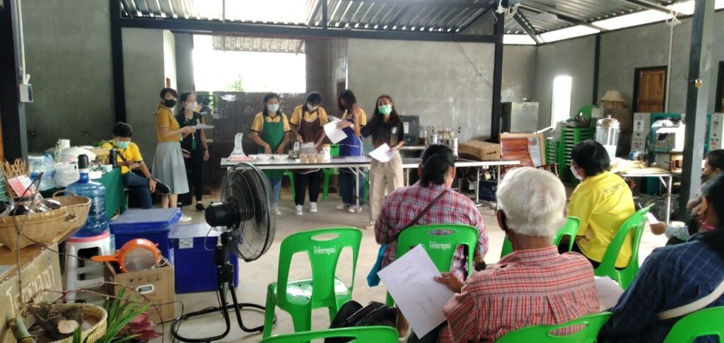 วันที่ 4 กรกฎาคม 2565 ดำเนินการจัดอบรมเกษตรกรเพื่อประเมินศักยภาพวิสาหกิจชุมชน ต.ยางม่วง