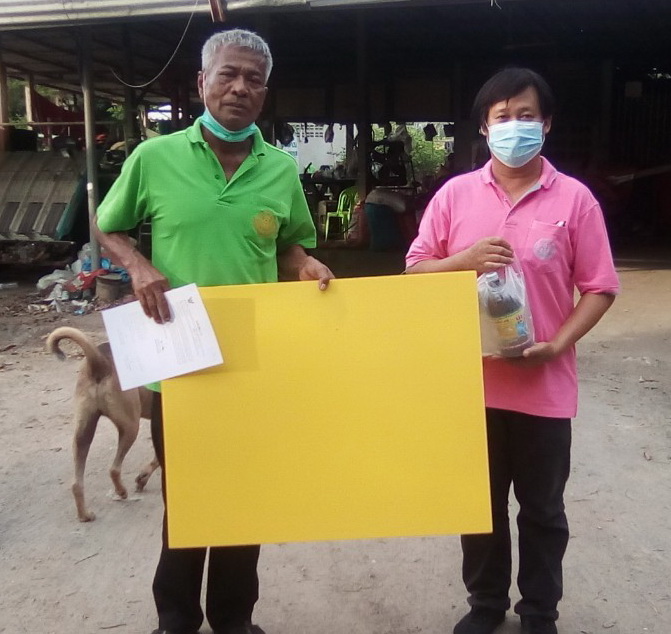 วันที่ 27 กรกฎาคม พ.ศ. 2565 สำนักงานเกษตรอำเภอท่ามะกา โดย นายวิเชียร ชินเจริญทรัพย์ เกษตรอำเภอท่ามะกา มอบหมายให้นายวรรณะ นิตย์ประเสริฐ นักวิชาการส่งเสริมการเกษตรชำนาญการ ลงพื้นที่หมู่ที่ 2 ตำบลพงตึก และหมู่ที่ 8 ตำบลแสนตอ อำเภอท่ามะกา จังหวัดกาญจนบุรี เพื่อมอบวัสดุทางการเกษตรให้แก่ศูนย์จัดการศัตรูพืชชุมชน สำหรับจัดทำแปลงติดตามสถานการณ์ศัตรูพืชในนาข้าว และเฝ้าระวังในพื้นที่เสี่ยงต่อการระบาดของศัตรูข้าว ซึ่งเกษตรกรจะเริ่มทำการเพาะปลูกข้าวนาปีในช่วงกลางเดือนสิงหาคมนี้