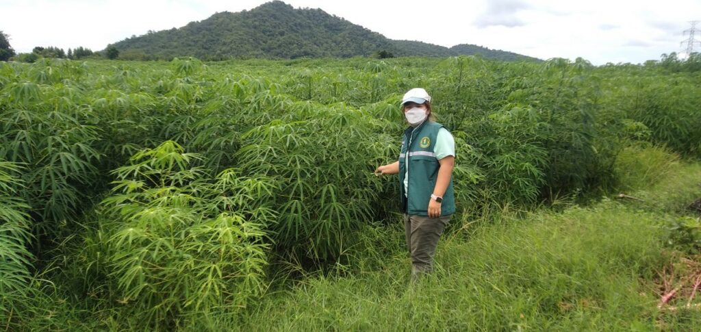 วันที่ 9 สิงหาคม 2565 ลงพื้นที่สำรวจแปลงมันสำปะหลังของเกษตรกร หมู่ที่ 6 ตำบลเขาสามสิบหาบ