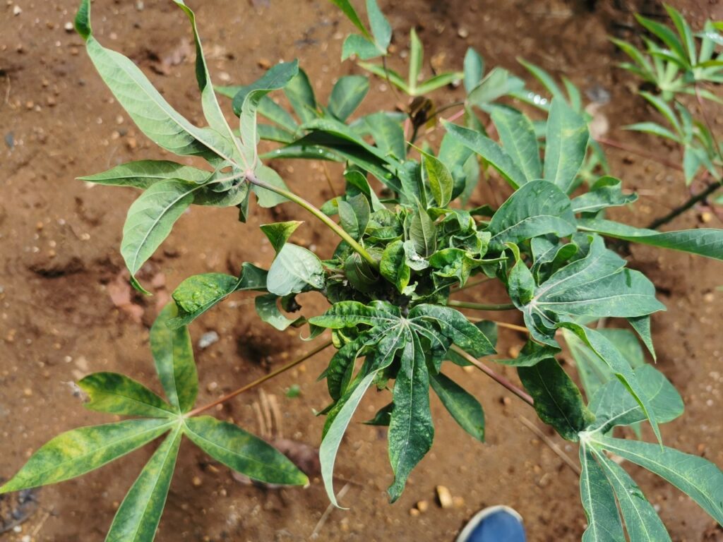 โดยนายวิเชียร ชินเจริญทรัพย์ เกษตรอำเภอท่ามะกา พร้อมด้วยเจ้าหน้าที่สำนักงานเกษตรอำเภอท่ามะกา ลงพื้นที่สำรวจแปลงมันสำปะหลังของเกษตรกร หมู่ที่ 6 ตำบลเขาสามสิบหาบ อำเภอท่ามะกา จังหวัดกาญจนบุรี พบการระบาดของโรคใบด่างมันสำปะหลัง จำนวน 1 แปลง พื้นที่การระบาด 2 ไร่ อายุมันสำปะหลังประมาณ 4 เดือน เบื้องต้นได้ให้คำแนะนำกับเกษตรกรในการป้องกันและกำจัดแมลงหวี่ขาวยาสูบ โดยให้ฉีดพ่นสารอิมิดาโคลพริด 70% WG อัตรา 12 กรัม ต่อน้ำ 20 ลิตร ฉีดพ่นทุก 7 วัน จนกว่าอาการจะดีขึ้น ส่วนต้นที่พบอาการของโรคแล้วให้ถอนต้นที่เป็นโรคตัดเป็นท่อนใส่ถุงดำมัดปากให้แน่นแล้วนำไปตากแดดไม่น้อยกว่า 7 วัน หรือจนกว่ามันสำปะหลังจะตาย เกษตรกรให้ความสนใจและจะนำไปปฏิบัติ