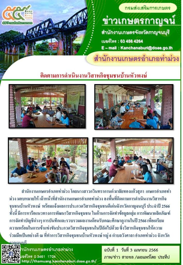 (3/4/66) ติดตามการดำเนินงานวิสาหกิจชุมชนบ้านหัวพงษ์ ตำบลวังศาลา Leave a Comment / ข่าวประชาสัมพันธ์ / By admin