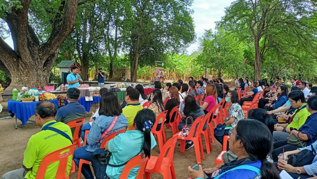 สำนักงานเกษตรอำเภอท่าม่วง โดยนางสาวกวินทรากานต์ มาลัยทองแก้วสุภา เกษตรอำเภอท่าม่วง มอบหมายให้ จ.ส.ต.ประทีป แก้วดวงแข นวส.ชำนาญการ กล่าวต้อนรับ คณะศึกษาดูงานจาก อบต.บางเสาธง จ.สมุทรปราการ ที่ได้เข้ามาศึกษาดูงาน วิสาหกิจชุมชนแปรรูปสมุนไพรสวนมาลี ตำบลทุ่งทอง ณ ศพก.เครือข่ายตำบลทุ่งทอง อ.ท่าม่วง จ.กาญจนบุรี