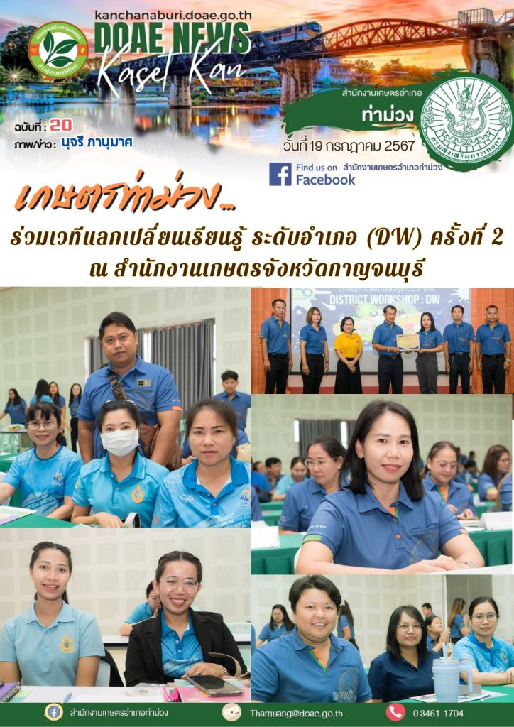 สำนักงานเกษตรอำเภอท่าม่วง นำโดย นางประภาพรรณ สุนทรวิภาต เกษตรอำเภอท่าม่วง พร้อมด้วยเจ้าหน้าที่สำนักงานเกษตรอำเภอท่าม่วงเข้าร่วมเวทีแลกเปลี่ยนเรียนรู้ระดับอำเภอ District Workshop : DW) ครั้งที่ 2/2567 โดยมีนายวีระศักดิ์ สุขทอง เกษตรจังหวัดกาญจนบุรี เป็นประธานเปิดการประชุม เพื่อให้เจ้าหน้าที่ได้มีการแลกเปลี่ยนเรียนรู้เรื่อง การจัดทำแผนผังแปลงเกษตรกรในที่ดินไม่มีเอกสาร