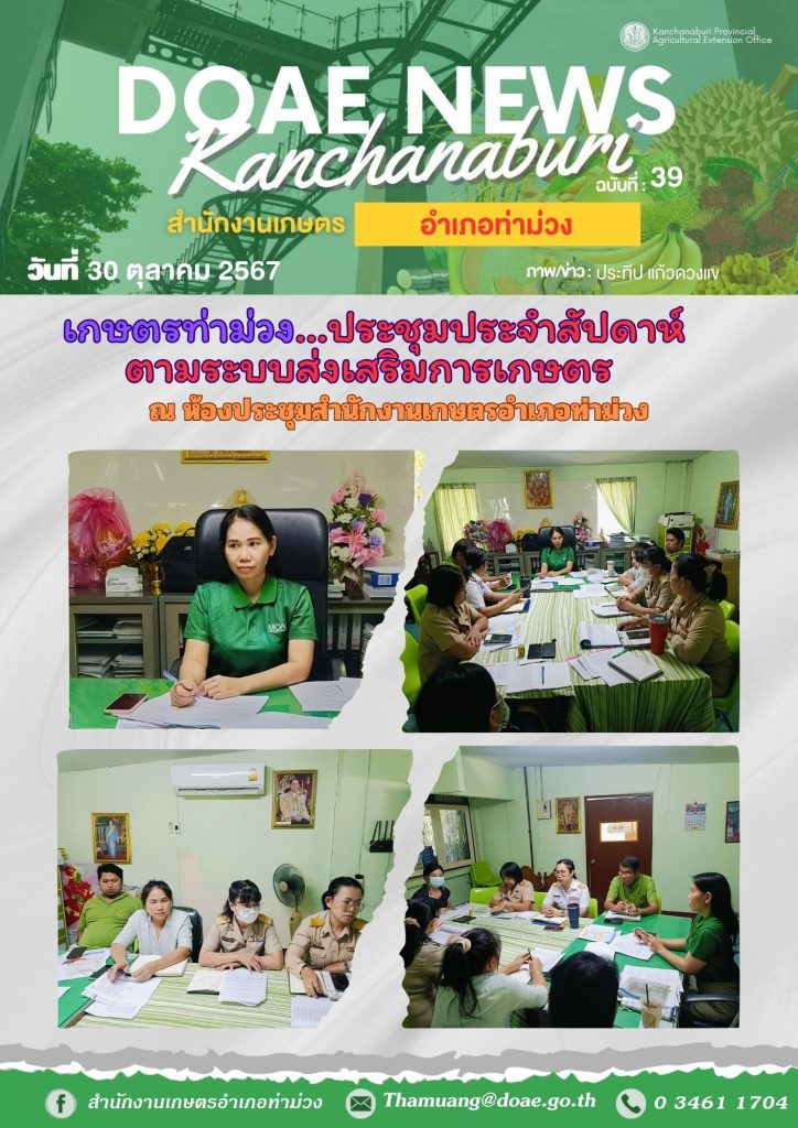สำนักงานเกษตรอำเภอท่าม่วง โดนนางประภาพรรณ สุนทรวิภาต เกษตรอำเภอท่าม่วง พร้อมเจ้าหน้าที่สำนักงานเกษตรอำเภอท่าม่วง ดำเนินการประชุมประจำสัปดาห์ตามระบบส่งเสริมการเกษตร เพื่อสรุปผลการดำเนินงานที่ผ่านมา และวางแผนการดำเนินงานของสำนักงานเกษตรอำเภอท่าม่วง พร้อมจัดสรรหน้าที่และพื้นที่การดำเนินงาน เพื่อให้เกิดความเรียบร้อย และตรงตามวัตถุประสงค์ของงาน ณ ห้องประชุมสำนักงานเกษตรอำเภอท่าม่วง จังหวัดกาญจนบุรี