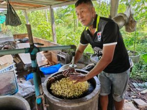 สำนักงานเกษตรอำเภอท่าม่วง โดยนางประภาพรรณ สุนทรวิภาต เกษตรอำเภอท่าม่วง พร้อมเจ้าหน้าสำนักงานเกษตรอำเภอท่าม่วง ลงพื้นที่ติดตามเยี่ยมเยียนการดำเนินงานของวิสาหกิจชุมชนในพื้นที่ตำบลพังตรุ และตำบลท่าตะคร้อ เพื่อเยี่ยมเยียนให้คำแนะนำกิจกรรมการดำเนินงานของกลุ่มวสช. ส่งมอบเอกสารการต่อทะเบียนวิสาหกิจชุมชน (ท.ว.ช. 3) พร้อมทั้งประชาสัมพันธ์เชิญชวนกลุ่มวสช. เข้าร่วมงานจัดจำหน่ายของดีและสินค้าเกษตรปลอดภัย จังหวัดกาญจนบุรี ในระว่างวันที่ 5 — 7 เมษายน 2568 ณ บริเวณศูนย์การค้าโรบินสัน ไลฟ์สไตล์ กาญจนบุรี ณ วิสาหกิจชุมชนบ้านสวนครัวเกษตร หมู่ที่ 6, วิสาหกิจชุมชนเอิร์ธเฮ้าส์ หมู่ที่ 8 ตำบลพังตรุ และวิสาหกิจชุมชนกลุ่มพัฒนาพันธุ์ผักและผลไม้ หมู่ที่ 1 ตำบลท่าตะคร้อ อำเภอท่าม่วง จังหวัดกาญจนบุรี ทั้งนี้ กลุ่มวสช. ให้ความสนใจในการร่วมไปจำหน่ายของดีและสินค้าเกษตรปลอดภัย จังหวัดกาญจนบุรี ในวันดังกล่าว จึงให้คำแนะนำในกรอกแบบฟอร์มเพื่อลงทะเบียนเข้าร่วมกิจกรรมต่อไป