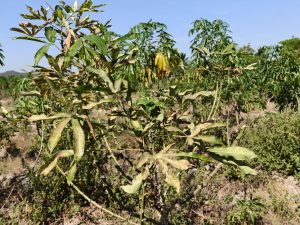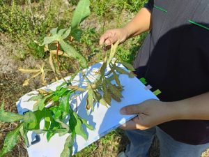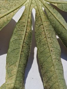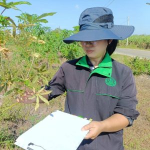 สำนักงานเกษตรอำเภอท่าม่วง โดยนางประภาพรรณ สุนทรวิภาต เกษตรอำเภอท่าม่วง มอบหมายให้ นางนุจรี ภานุมาศ นักวิชาการส่งเสริมการเกษตรชำนาญการ ลงพื้นที่สำรวจโรคใบด่างมันสำปะหลังตามหลักเกณฑ์ใหม่ ในพื้นที่ หมู่ 5, 6 และ 7 ตำบลพังตรุ อำเภอท่าม่วง จังหวัดกาญจนบุรี จากผลการสำรวจพื้นที่บริเวณโดยรอบแปลงสังเกตลักษณะอาการของโรคใบด่างมันสำปะหลัง และอาการผิดปกติจากศัตรูพืชอื่นๆ จำนวน 7 แปลง พื้นที่ปลูกประมาณ 40 ไร่ พบการระบาดของโรคใบด่างประมาณ 15 ไร่ โดยในมันสำปะหลังอายุน้อยกว่า 3 เดือน ยังคงพบลักษณะอาการโรคใบด่างในต้นที่ปลูกติดกัน ในแถวเดียวกันนั้น ซึ่งสันนิษฐานได้ว่าเกิดจากท่อนพันธุ์ที่นำมาปลูก และพบการทำลายของไรแดงในแปลงมันสำปะหลังอายุเกิน 6 เดือน จำนวน 3 แปลง พื้นที่การระบาดกว่า 5 ไร่ ทั้งนี้เจ้าหน้าที่ได้รวบรวมข้อมูลและจัดทำสื่อแจ้งเตือนการระบาด เพื่อประชาสัมพันธ์ให้ผู้นำชุมชนและเกษตรกรในพื้นที่รับทราบแนวทางการป้องกันกำจัดศัตรูพืชและกำจัดต้นที่เป็นโรคใบด่างออกจากแปลง เพื่อป้องกันการแพร่กระจายของโรคในพื้นที่