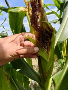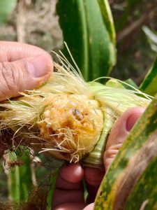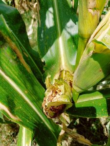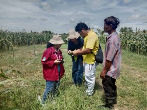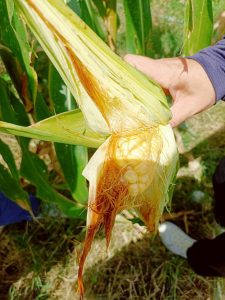 สำนักงานเกษตรอำเภอท่าม่วง โดยนางประภาพรรณ สุนทรวิภาต เกษตรอำเภอท่าม่วง พร้อมด้วยเจ้าหน้าที่สำนักงานเกษตรอำเภอท่าม่วง ลงพื้นตรวจสอบแปลงเกษตรกรผู้ปลูกข้าวโพดหวานที่ประสบปัญหาข้าวโพดปลายฝักเน่า ส่งผลให้พ่อค้าไม่รับซื้อผลผลิต จากการลงพื้นที่สำรวจแปลงพบว่าลักษณะอาการปลายฝักเน่านั้นพบตัวหนอนกัดกินบริเวณเส้นไหมของฝัก และเจาะเข้าไปกัดกินอยู่ภายในบริเวณปลายฝัก ทำความเสียหายต่อฝักของข้าวโพดโดยตรง เนื่องจากปลายฝักเน่า ประกอบกับสภาพอากาศในช่วงที่ผ่านมาฝนตกชุก ความชื้นสูง บริเวณปลายฝักมีร่องรอยการทำลายของหนอน ทำให้น้ำสามารถเข้าไปบริเวณฝักได้ ส่งผลให้ฝักเน่า เจ้าหน้าที่จึงให้คำแนะนำต่อเกษตรกรในการป้องกันกำจัดเพื่อลดความเสียหายต่อผลผลิต ณ หมู่ที่ 5 ตำบลวังศาลา อำเภอท่าม่วง จังหวัดกาญจนบุรี