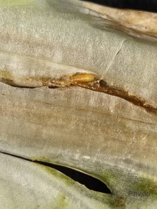 สำนักงานเกษตรอำเภอท่าม่วง นำโดยนางประภาพรรณ สุนทรวิภาต เกษตรอำเภอท่าม่วง พร้องเจ้าหน้าที่ ร่วมกับกลุ่มอารักขาพืช สำนักงานเกษตรจังหวัดกาญจนบุรี เจ้าหน้าที่กลุ่มส่งเสริมและพัฒนาการผลิต สำนักส่งเสริมและพัฒนาการเกษตรที่ 2 จังหวัดราชบุรี และเจ้าหน้าที่ศูนย์ส่งเสริมเทคโนโลยีการเกษตรด้านการอารักขาพืช จังหวัดสุพรรณบุรี ลงพื้นที่สำรวจ ติดตาม การเข้าทำลายของศัตรูพืช และประเมินสถานการณ์เพื่อเฝ้าระวังการระบาดของศัตรูพืช พบการเข้าทำลายของศัตรูพืชในผักกาดเขียวปลี และผักกาดขาวปลี ในพื้นที่ปลูก 100 ไร่ โดยมีลักษณะการเข้าทำลายที่บริเวณกาบใบล่าง พบตัวหนอน และดักแด้อยู่ภายในกาบใบ จึงมีการเก็บตัวอย่างแมลงศัตรูพืชเพื่อมาวินิจฉัย ซึ่งต้องดำเนินการวินิจฉัยอย่างละเอียด เพื่อนำมาสู่การแนะนำการป้องกันกำจัดให้กับเกษตรกรได้อย่างถูกต้องและมีประสิทธิภาพ ณ ตำบลทุ่งทอง อำเภอท่าม่วง จังหวัดกาญจนบุรี
