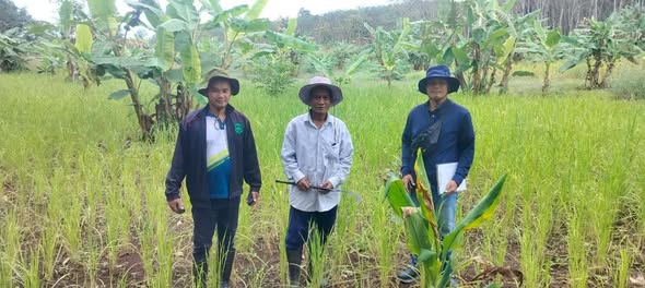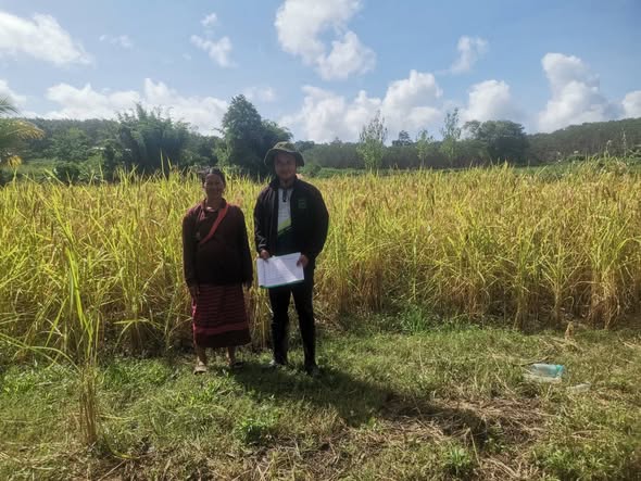 วันที่ 4 พฤศจิกายน 2568 นายจตุพร อิ่มจิตร เกษตรอำเภอทองผาภูมิ มอบหมายให้ นายพอเจตน์ จุลเวช นักวิชาการส่งเสริมการเกษตรชำนาญการ นายสุทัศน์ สุขศีลล้ำเลิศ นักวิชาการส่งเสริมการเกษตรปฏิบัติการ และนายพีระพงษ์ แก้วทับทิม นักวิชาการส่งเสริมการเกษตร ร่วมกับผู้นำชุมชน และเกษตรกรผู้ปลูกข้าว ดำเนินการตรวจสอบพิกัดแปลงและพื้นที่เพาะปลูกข้าวนาปี ปีการผลิต 2568/69 ตามที่เกษตรกรได้แจ้งขึ้นทะเบียนไว้กับสำนักงานเกษตรอำเภอทองผาภูมิ เพื่อให้ได้ข้อมูลที่ถูกต้อง ตรงตามความเป็นจริง ณ บ้านทิพุเย หมู่ 3 ตำบลชะแล และบ้านเกริงกระเวีย หมู่ 2 ตำบลชะแล อำเภอทองผาภูมิ จังหวัดกาญจนบุรี