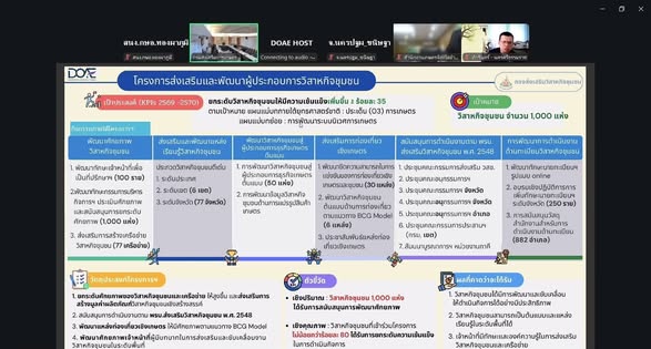 วันที่ 1 ธันวาคม 2568 นายจตุพร อิ่มจิตร เกษตรอำเภอทองผาภูมิ มอบหมายให้นางสาวจุฑามาศ ป้อมแสง นักวิชาการส่งเสริมการเกษตรชำนาญการ เข้าร่วมประชุมชี้แจงการดำเนินงานส่งเสริมวิสาหกิจชุมชนตามโครงการประจำปีงบประมาณ พ.ศ. 2569 ผ่านระบบออนไลน์ Zoom Meeting ณ สำนักงานเกษตรอำเภอทองผาภูมิ หมู่ 1 ตำบลท่าขนุน อำเภอทองผาภูมิ จังหวัดกาญจนบุรี