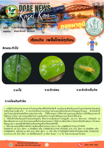 Post Views: 217 Facebook iconFacebookTwitter iconTwitterLINE iconLine Post navigation เฝ้าระวังแมลงดำหนามข้าว เตือนภัย หนอนด้วงหนวดยาวเจาะลำต้นทุเรียน