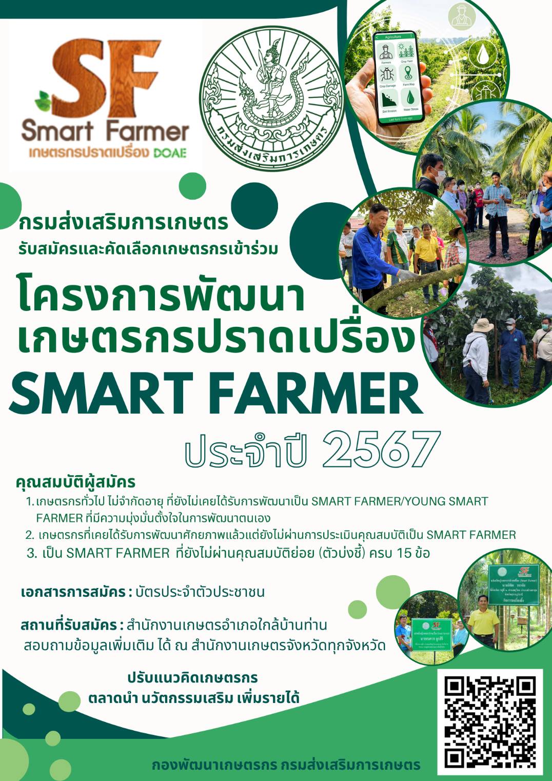 กรมส่งเสริมการเกษตร เปิดรับสมัครและคัดเลือกเกษตรกรเข้าร่วม โครงการพัฒนาเกษตรกรปราดเปรื่อง Smart Farmer ประจำปี 2567