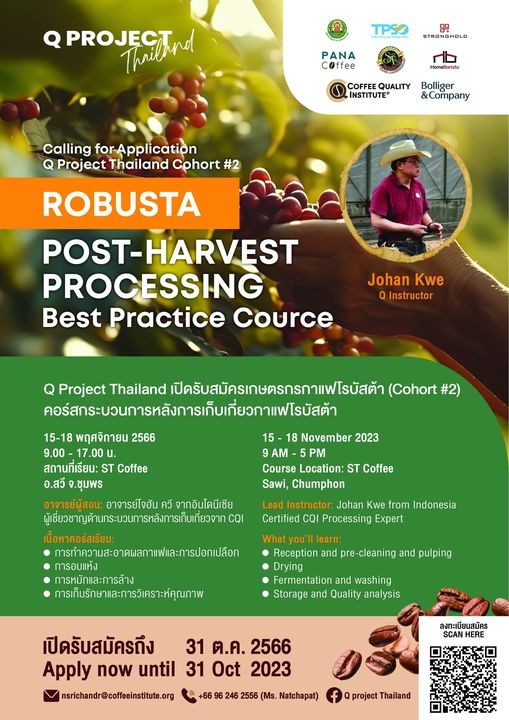 📢 โอกาสดีๆ ของเกษตรกรกาแฟโรบัสต้า: เส้นทางสู่โอกาสเริ่มต้นที่นี่📢 โครงการ Q Project Thailand เปิดรับสมัครเกษตรกรกาแฟรุ่นที่ 2 (กาแฟโรบัสต้า) เพื่อเข้าร่วมโครงการ โดยจะเริ่มอบรมคอร์สแรกคือ 1️⃣ การอบรมกระบวนการหลังการเก็บเกี่ยวระหว่างวันที่...